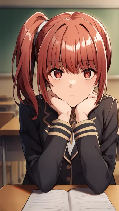 chastille_lillqvist, 红发, 侧马尾, 红眼, 刘海