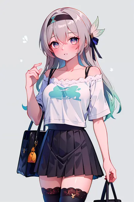 Firefly: fireflyhsr, hairband, gradient thighhighs, white boots