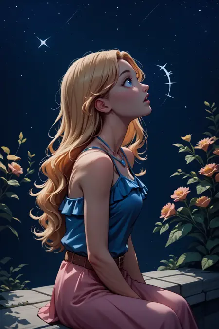 주요 프롬프트: "NSHaleyStardew, 긴 머리, 노란 머리, 파란 눈"