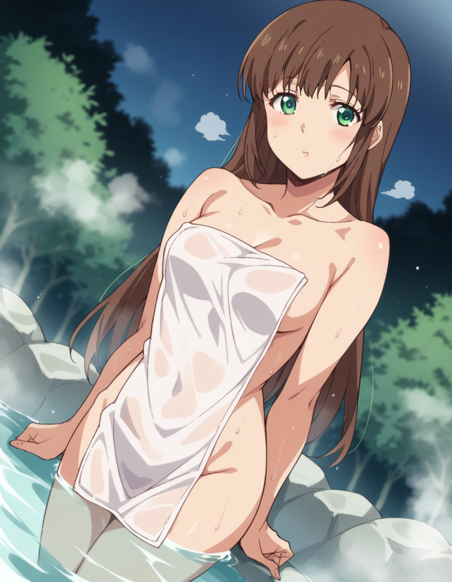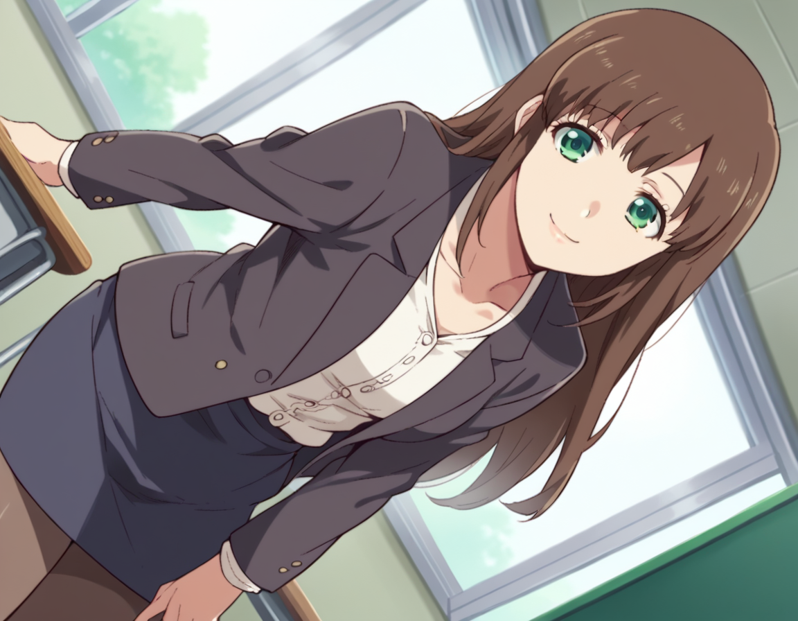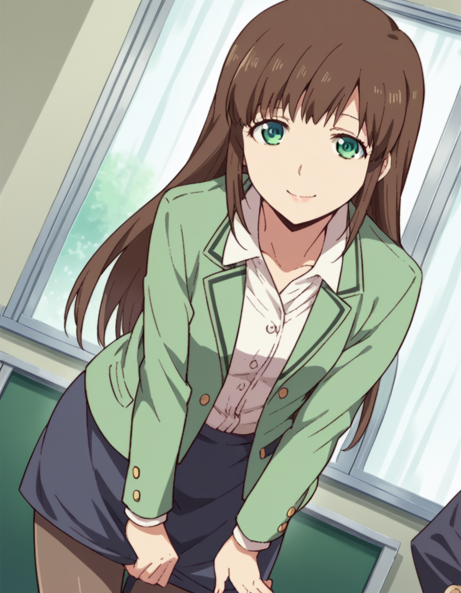 hina tachibana, 긴 머리, 갈색 머리, 녹색 눈,