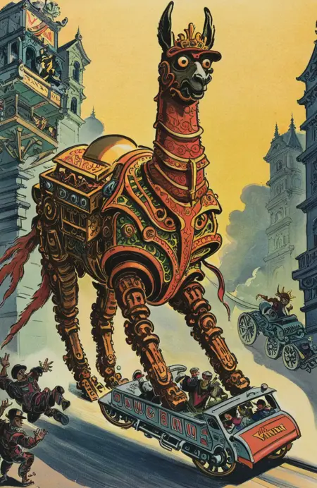 Further tweak the style: preface your prompt with 'art by artist, vintage illustration, …', or 'artist style vintage illustration, …' – lowering the lora strength if necessary.