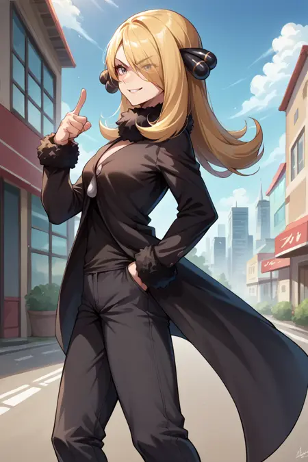 来自《宝可梦 钻石与珍珠》的辛西娅。在 Pony Diffusion V6 XL 上训练。测试强度为 0.8-1.0。