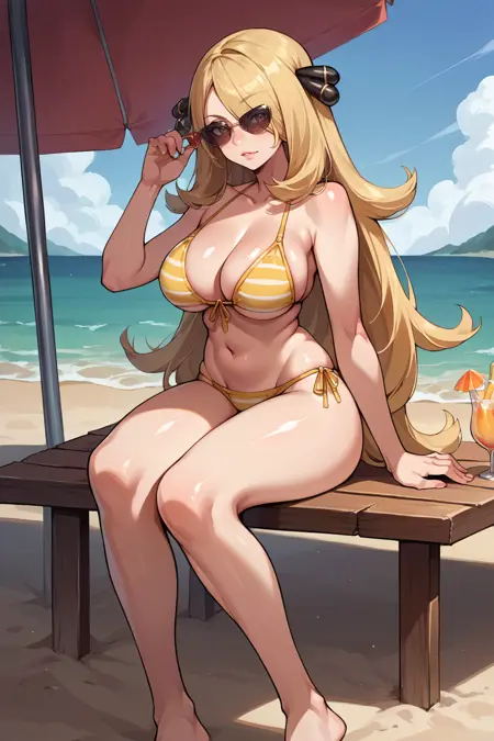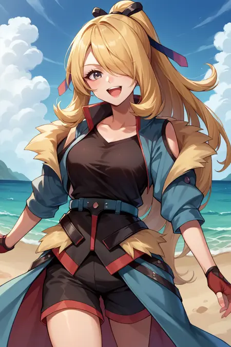 ポケットモンスター ダイヤモンド&パールのシンシア。Pony Diffusion V6 XLで学習済み。強度0.8-1.0でテスト済み。