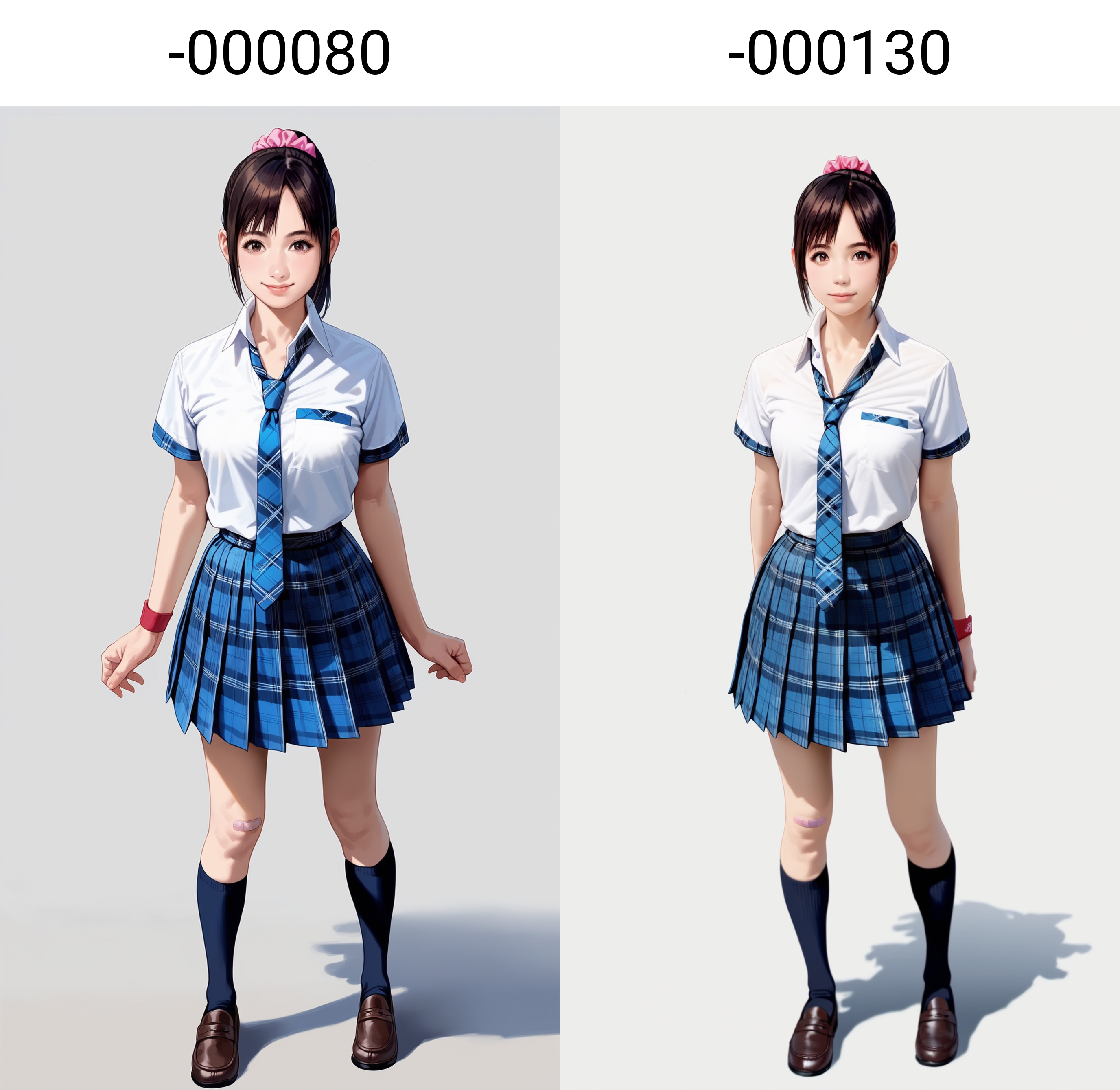 80 에포크 버전은 더 유연하지만, 130 에포크 버전에 비해 디테일이 덜 세련되고 파손되기 쉽습니다. 130 에포크 버전은 게임 모델링 스타일에 더 가까우며 캐릭터 외형이 더 안정적이지만, 이미지가 3D 모델처럼 보여 캐릭터의 움직임이 다소 딱딱해 보입니다. 자세한 내용은 아래에 공유한 포스트를 참고하세요.