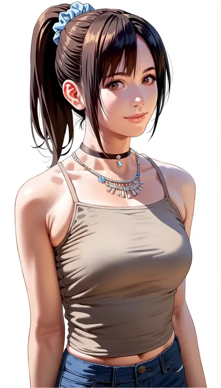 white camisole,jeans,tight clothing,choker,jewelry,