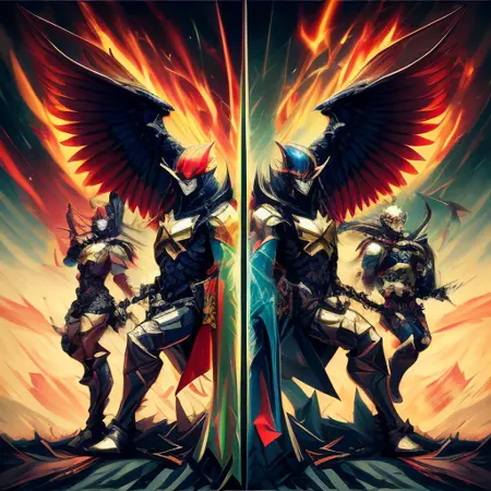 风暴是一片黑暗与猩红交织的漩涡,是肆意狂怒的狂乱暴风雨,仿佛要吞噬一切阻挡在前的事物。在这一混沌之中,有序的大地景观屹立不倒,如一座坚定的堡垒,坚守着精准与清晰,抵御着狂暴的冲击。这场战斗持续不断,双方陷入毫不妥协的争夺战,誓要主宰一切。