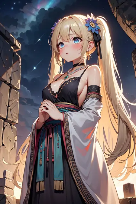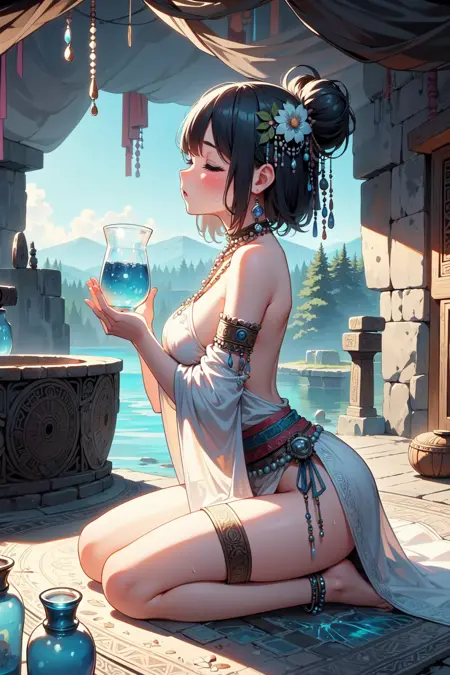 참고: 무릎을 꿇는 장면이 필요하면 "kneeling"을 추가하세요. SDXL LoRA 손가락은 안정적이지 않으므로 가중치 0.7을 권장합니다. SDXL이 너무 성숙하게 느껴지면 "chibi, big head, huge head"를 삭제하세요.