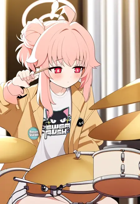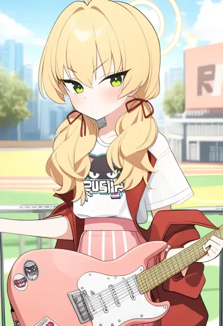 yoshimi (band) (blue archive), t-shirt, print shirt, red jacket
