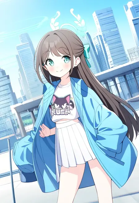 natsu (band) (blue archive), brown jacket, white shirt, print shirt