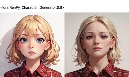 我需要一种方法来为 Ren'Py 创建一致的 1024x1024 角色肖像,采用卡通/2D 简化动漫风格,因此我为 Pony XL 制作了这个 LoRA!