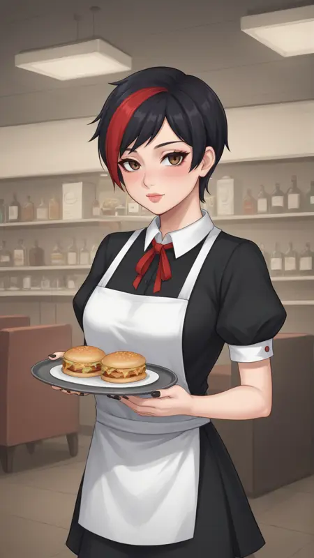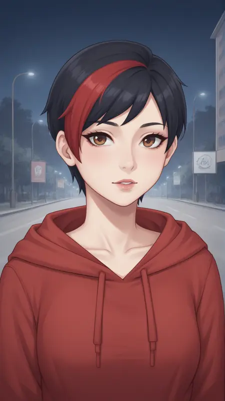 olesya,棕色眼睛,短发,黑发,红发,双色发,多色发,挑染发,1girl,单人,(有时中等胸部)