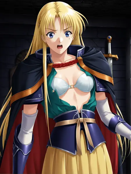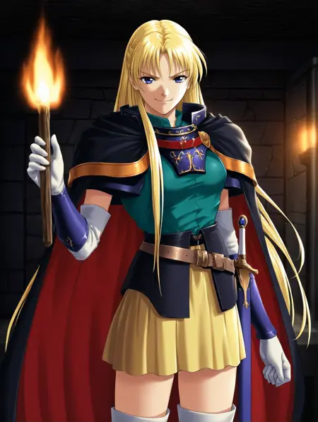 갑옷, 파랑 망토, 빨강 망토, 양면 망토, 녹색 셔츠, 노랑 소매, 녹색 치마녹색 치마, 노랑 셔츠검은 망토, 빨강 망토, 양면 망토, 녹색 셔츠, 노랑 치마, 팔꿈치 장갑, 허벅지 양말녹색 셔츠, 노랑 치마