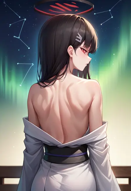 TsukatsukiRio, 黑发, 红眼, 环形瞳孔, 白色瞳仁, 发夹, 光环