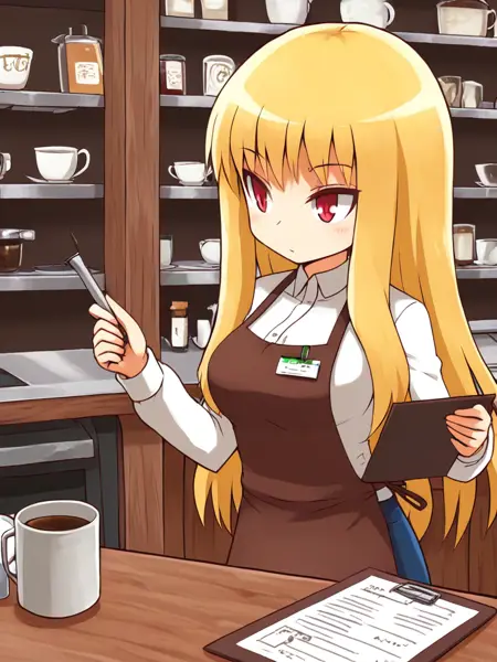 推荐提示词:Claudia,红眼睛,长金发,红色连衣裙,红色蓬松袖子,白色衬衫,白色长裙,棕色皮革束身衣