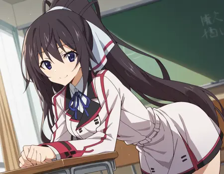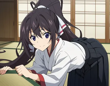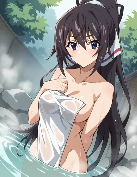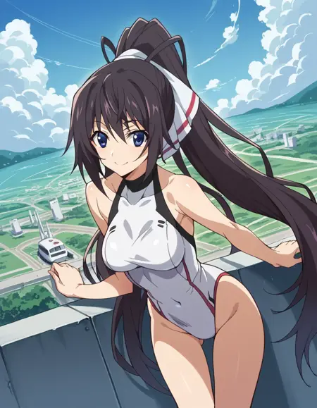 houki shinonono, long hair, blue eyes, black hair, ribbon, hair ribbon, ponytail,