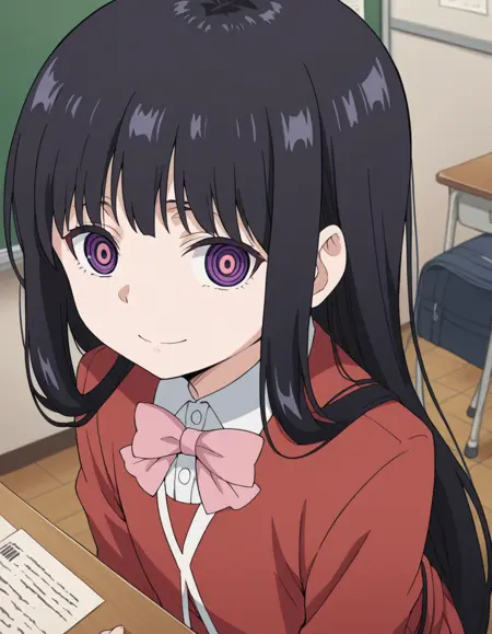 oto adashino, 长发, 刘海, 黑发, 极长发, 紫色眼睛, 环状眼睛,