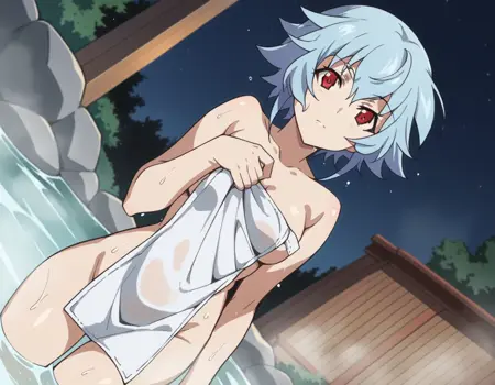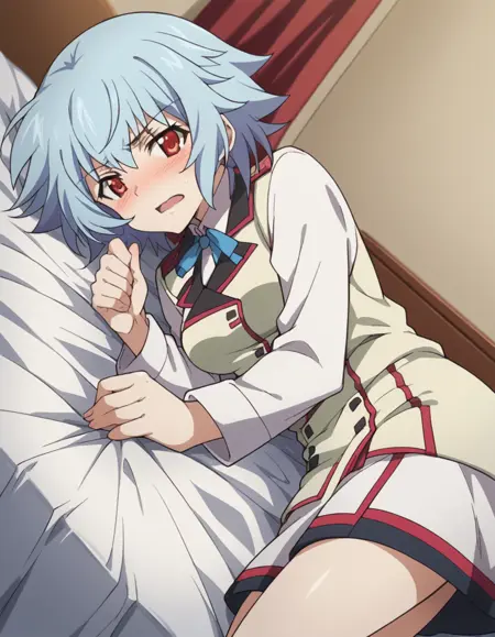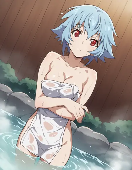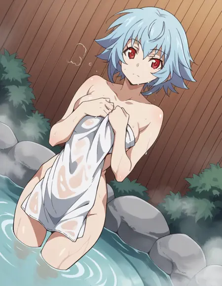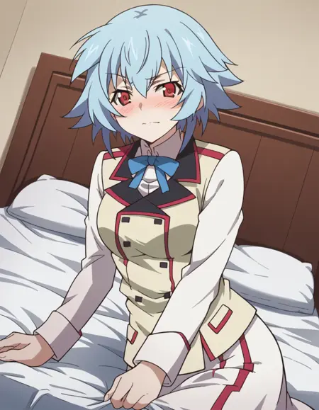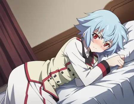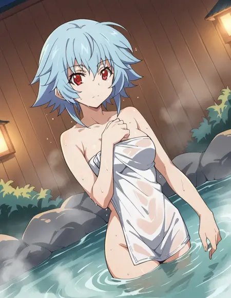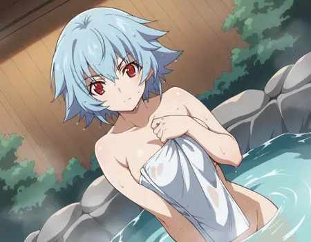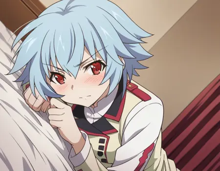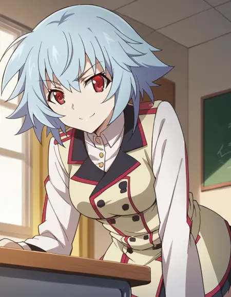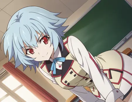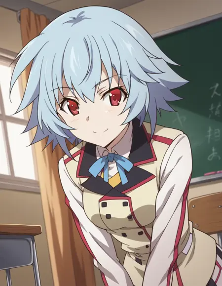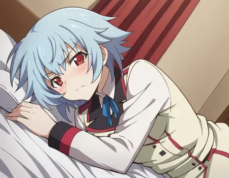 tatenashi sarashiki, 단발, 파란 머리, 붉은 눈,