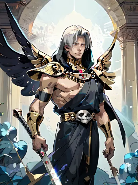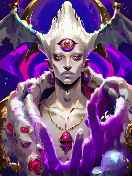 このLoRAは、HadesおよびHades IIのゲーム内アートとファンアートを用いて学習されています。このモデルはPony Diffusion V6 XLで学習されています。