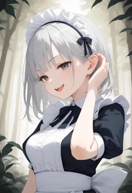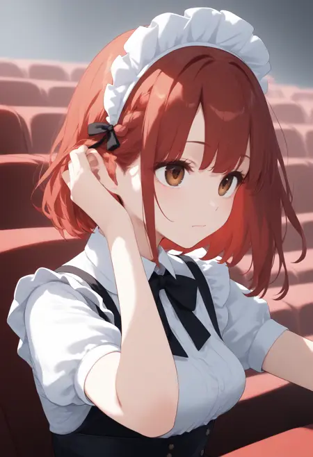 無くても動作しますが hand up, hair tucking, hand in hair, adjusting hair も推奨、LoRA無しだとぼんやりと髪を触るくらいのプロンプトですが耳を出す動作へと矯正します。