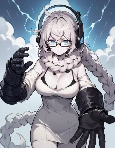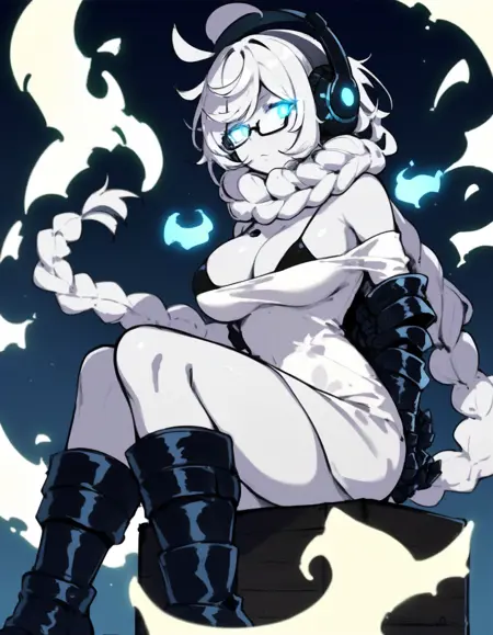 white skin,blue eyes,very long hair,braid,headphones,glasses,