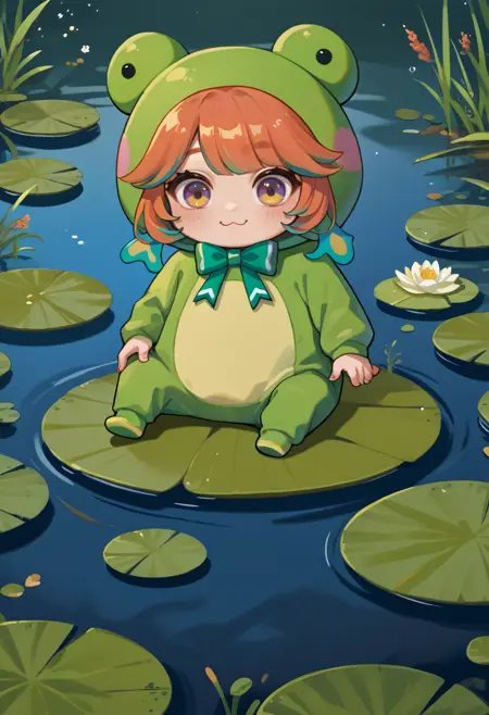 Frogiwawa, chibi, frog costume, green bow