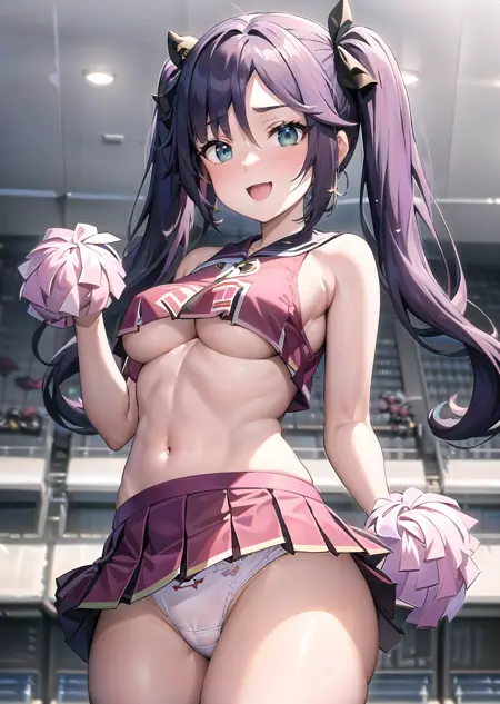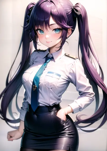제시된 예시에서 확인할 수 있듯이, 기본 의상을 쉽게 변경할 수 있습니다. 다만 기본 의상 변경 시 머리 색이나 눈 색이 원본과 약간 다를 수 있습니다. 이를 방지하기 위해 "purple hair"와 "aqua eyes"를 사용하여 AI가 원래 디자인으로 복귀하도록 유도해 주세요.