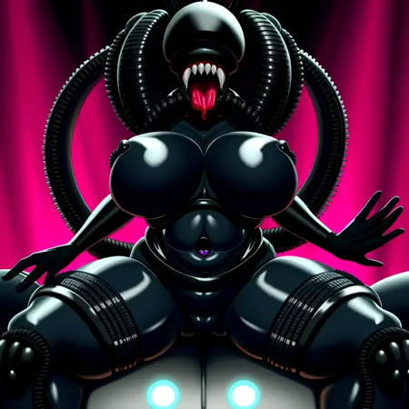 xenomorph,alien(系列),性感姿势,丰满,粗壮的大腿,宽臀,巨大的乳房,h.r. 吉格尔,美人海报,微笑,咧嘴笑,唾液,流口水,滴口水,乳胶