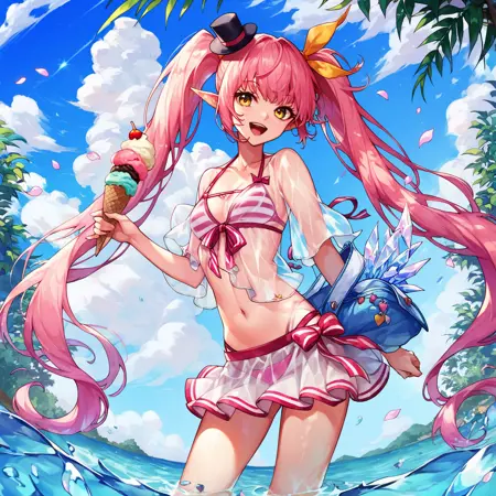 3.0版本。这个版本怎么说呢,额外加了个面部和一定的像素风格,但像素风格的不是很强烈,面部额外训练的效果却很明显,在面部占比较大的图中效果要比2.0强一些(女性角色脸更加偏2d了,半身像情况下会更加自然了),在画风上感觉没有太大的变化,与其说是3.0还不如说是半身特化的,半身像推荐832*1216的分辨率,全身像则要进行高清修复(起码要大于1800分辨率全身才比较能看),怪物与男性角色在训练过程中大概占了有四分之一的,所以也可以出怪物或是与男性角色,但nsfw效果没试过,0.6-0.8,cfg 5