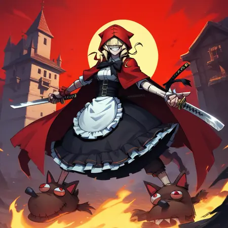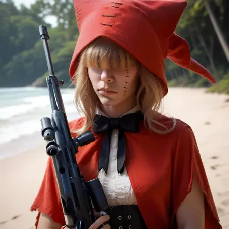 来自《数码宝贝解放者》的Digimon Chaperomon的LoRA。字面意思是手持加特林机枪的小红帽。我建议阅读版本发布说明,以了解每个版本的功能。