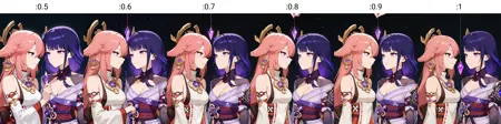 가중치: 0.6 (0.4-0.8). LoRA는 스타일에 영향을 줄 수 있으므로 가능한 경우 생성의 40%에서 꺼주세요. 이는 플러그인 https://github.com/cheald/sd-webui-loractl 을 사용하여 수행할 수 있습니다.