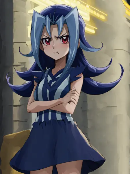 这是《游戏王ZEXAL》中上崎里欧的LoRA,她是主角对手上崎龙牙的妹妹。她擅长多种运动,如足球和棒球,同时也像她哥哥一样是一名决斗者,尽管她真实身份是梅拉格,即包括龙牙在内的七巴里皇帝之一。