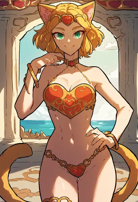 Relevant tags are: zeldacat, cat tail, anklet, pelvic curtain