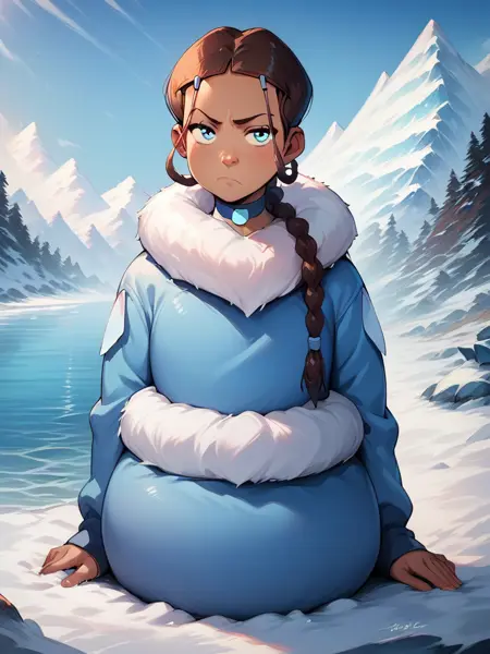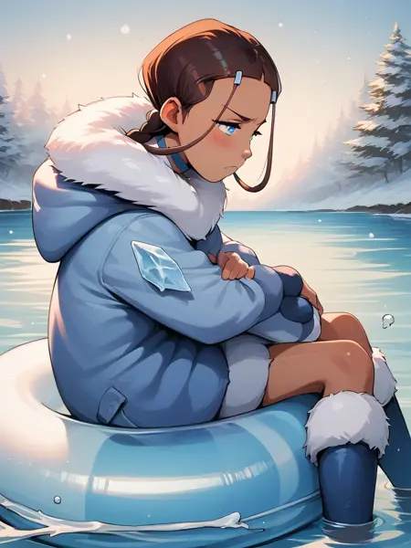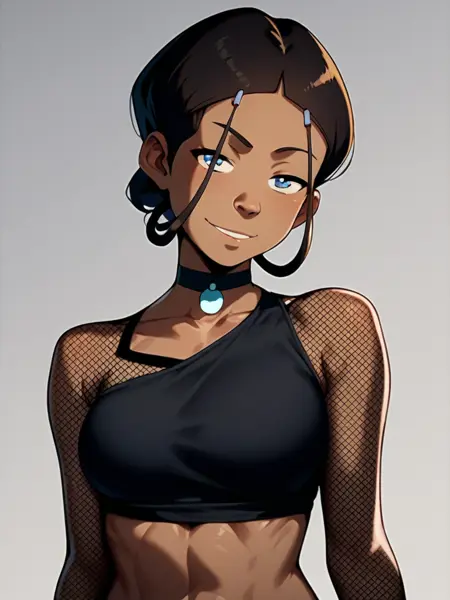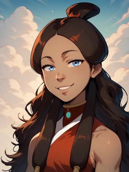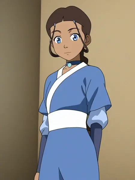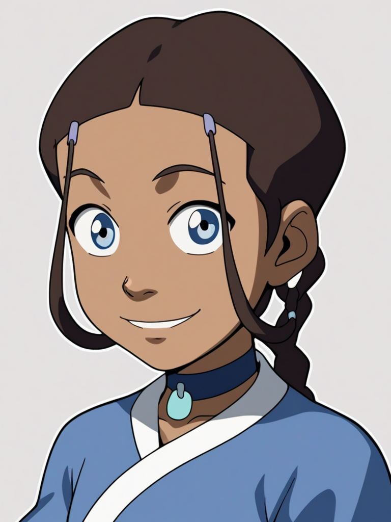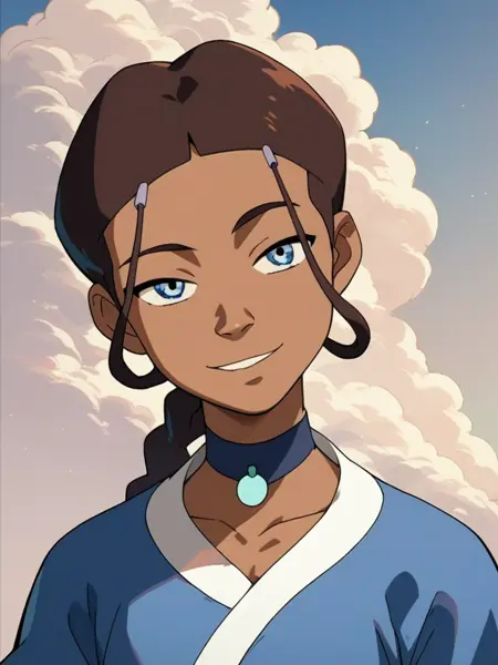 katara, 1girl, dark skin, brown hair, blue eyes, braid,