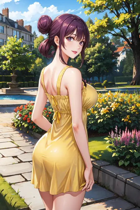 The weird hair is slightly inconsistent; "hair bun" might help.
