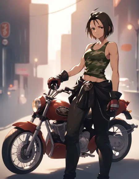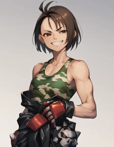 탱크탑: rskzm, 캠oufl라지 탱크탑, 허리에 자켓, 벌거벗은 팔, 가죽 바지, 장갑