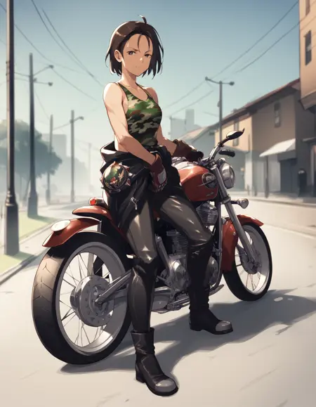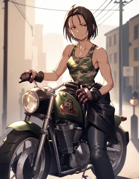 背心:rskzm,迷彩背心,夹克系在腰间,裸露手臂,皮裤,手套