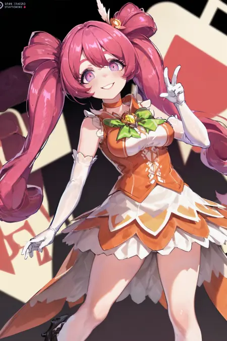 Magica2019: magica2019,翅膀发饰,项圈,橙色连衣裙,蝴蝶结,胸针,绿色蝴蝶结,无袖,荷叶边,白色手套,肘部手套,橙色鞋履,高跟鞋