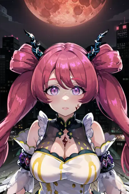 发圈,红发,极长发,异色瞳,紫色眼睛,粉色眼睛,蓝色眼睛,