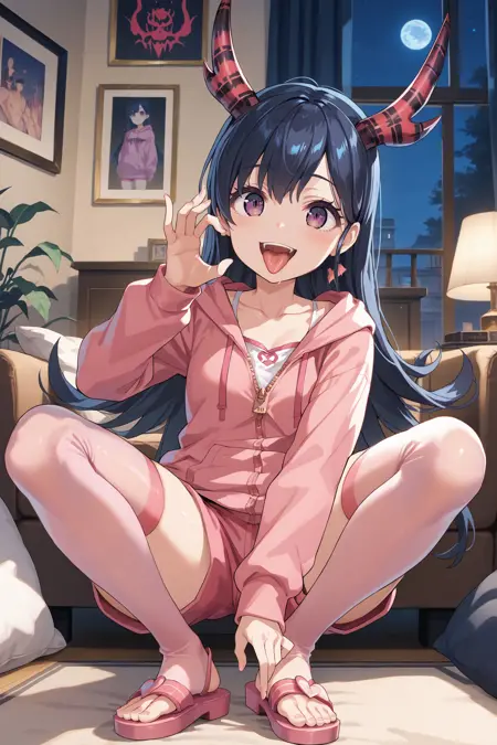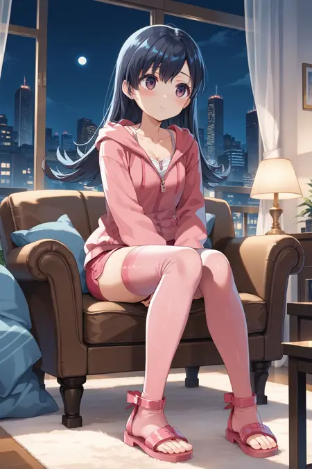 LoungeWear: lwear, 粉色连帽衫,锁骨,拉链,长袖,短裤,粉红色短裤,粉色大腿袜,凉鞋,粉色鞋履