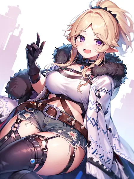 现实由加莉 = 现实中的由加莉 = 人类形象,黑发 + 在负面提示中加入 "elf, pointy ears, ears"