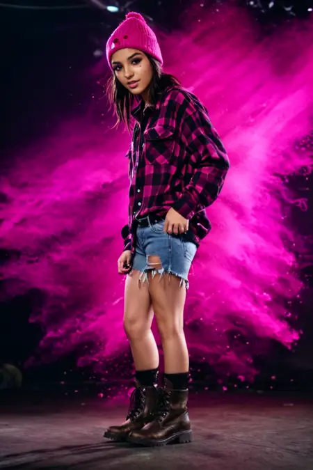 它会生成带有不同颜色的色彩泼溅效果,角色位于画面中央。