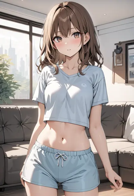 Use a strength between 0.6 and 0.8 for best results. You may want to use "navel" as additional keyword to get low-rise versions.
