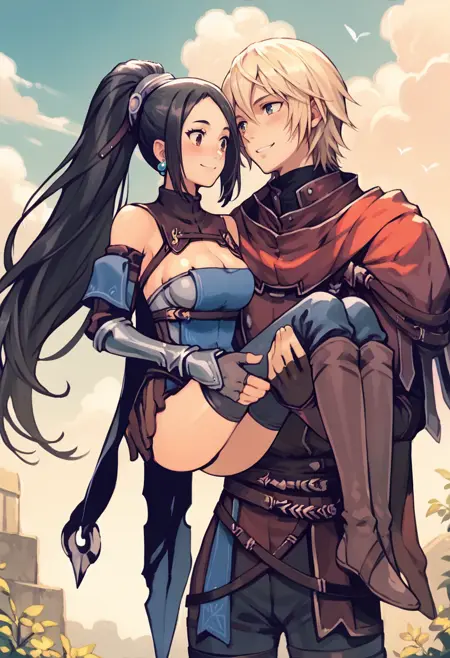 stockeRH, red capelet, fingerless gloves, belt, pants, boots