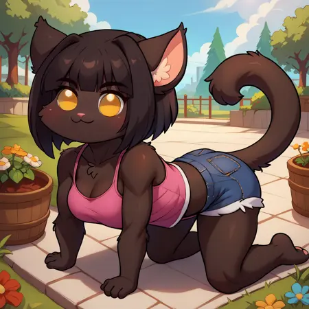 트리거: 정확한 생성을 위해 항상 "rachaelsaleigh, cat girl, black fur, yellow eyes, animal ears, cat tail, toned, black hair"를 사용하세요.