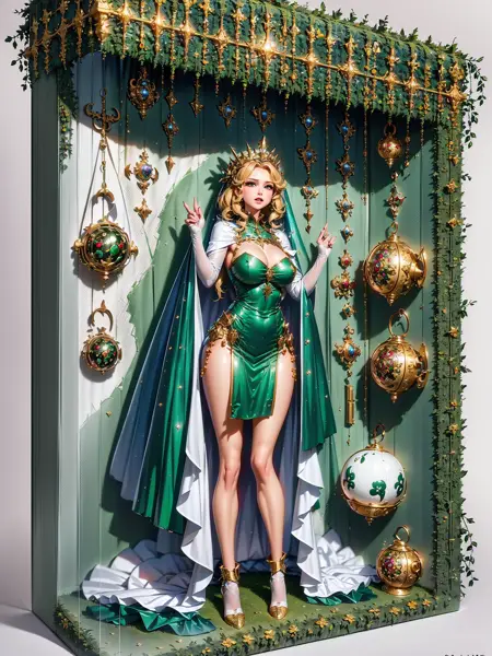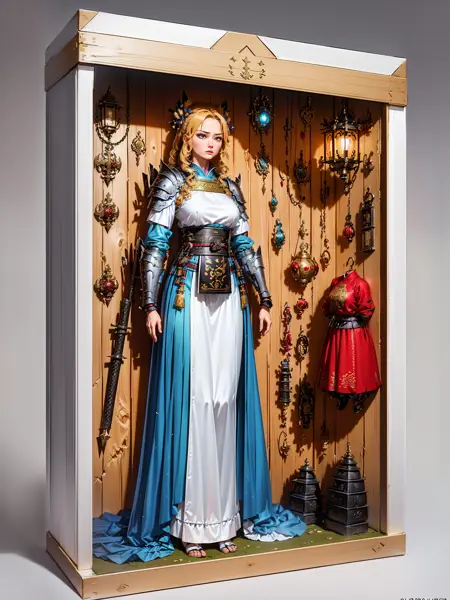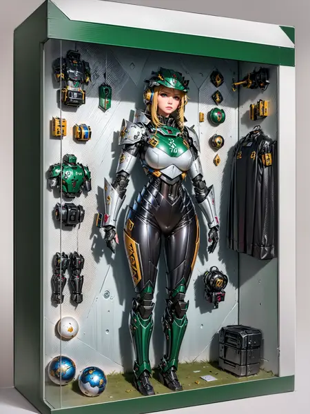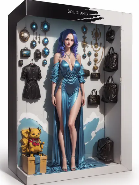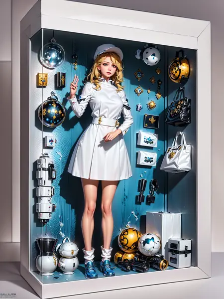 이 모델은 매우 재미있습니다. 인물을 박스 안에 넣을 수 있으며, 다른 모델과 조합하면 장난감처럼 보일 수 있습니다. 박스 안에 들어가는 건 인물뿐 아니라, 그와 관련된 스타일의 장식물이나 옷 등도 포함됩니다. 키워드를 직접 입력하여 추가할 수 있습니다. 모든 물건을 정확하게 표현하진 못하지만, 대체로 거의 정확하게 나옵니다.
