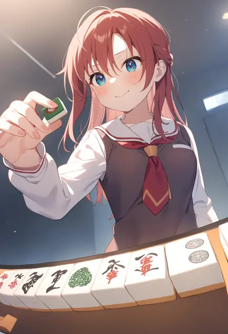 即使不使用LoRA,也能生成类似麻将的图像,但似乎只学习了胡牌的场景,因此牌面始终显示正面。为了让它能生成对局中的画面,特此训练。
