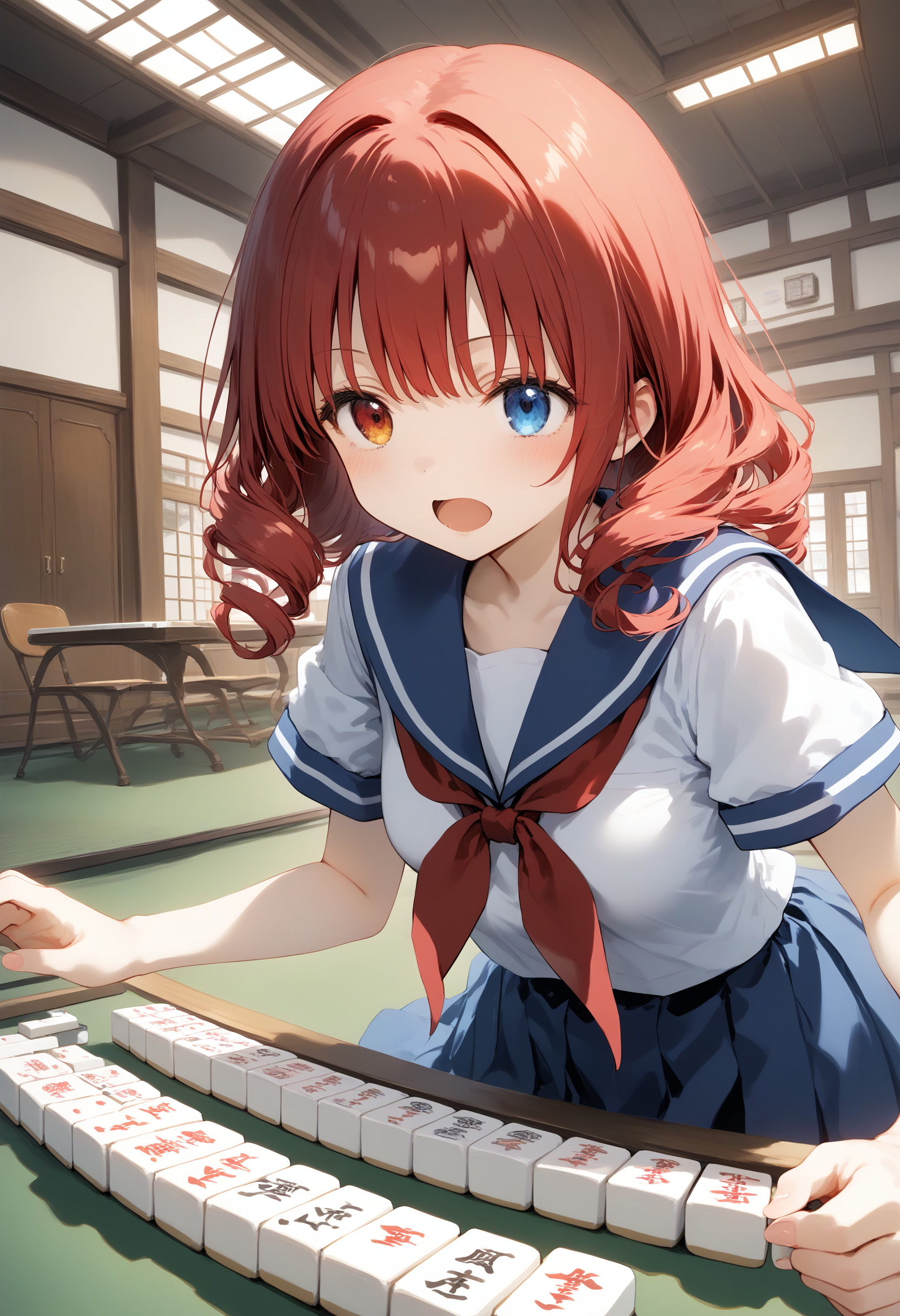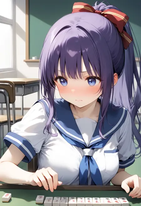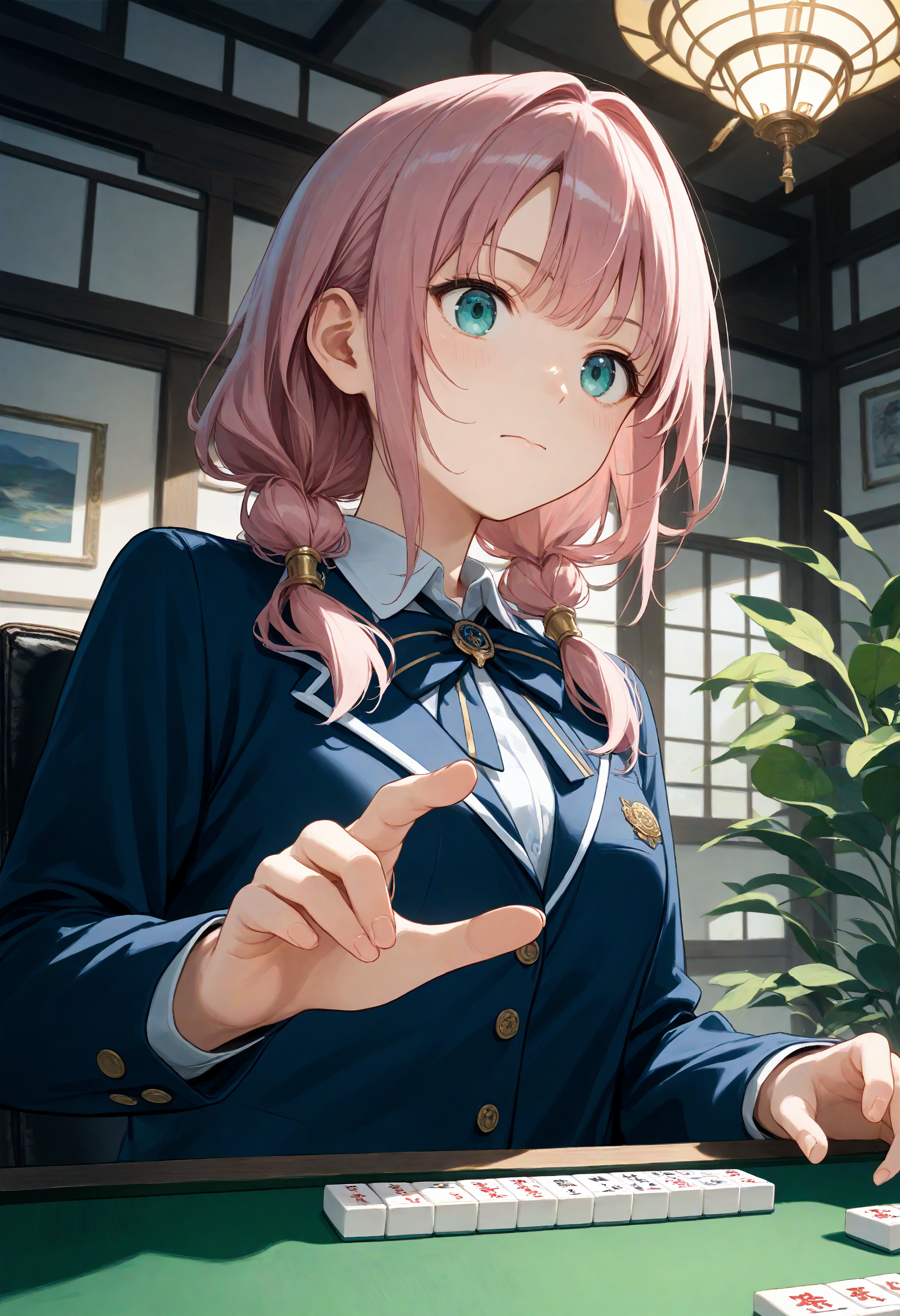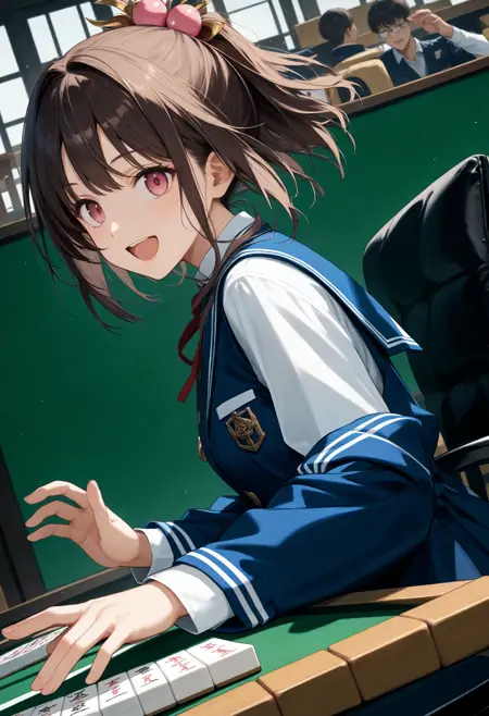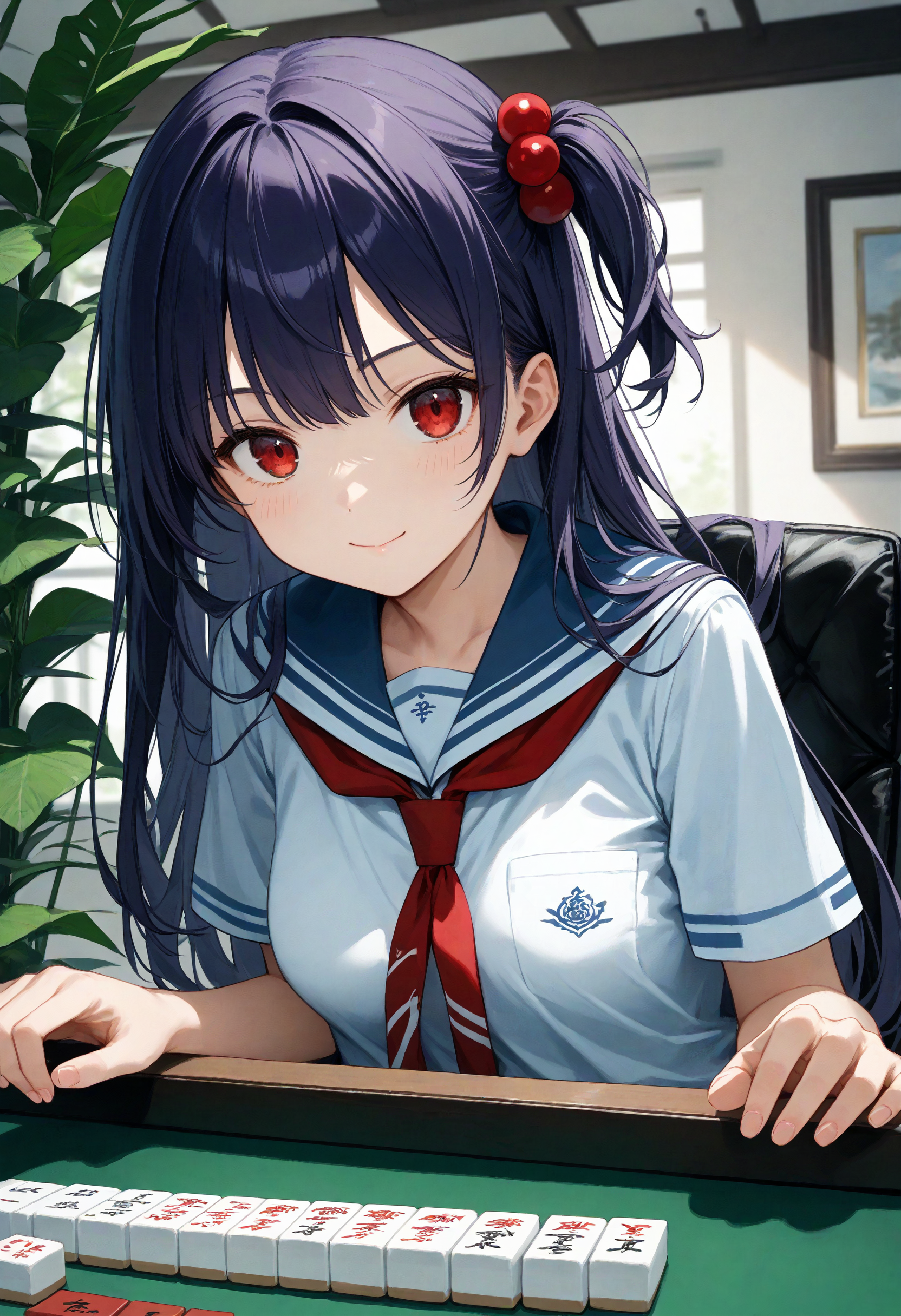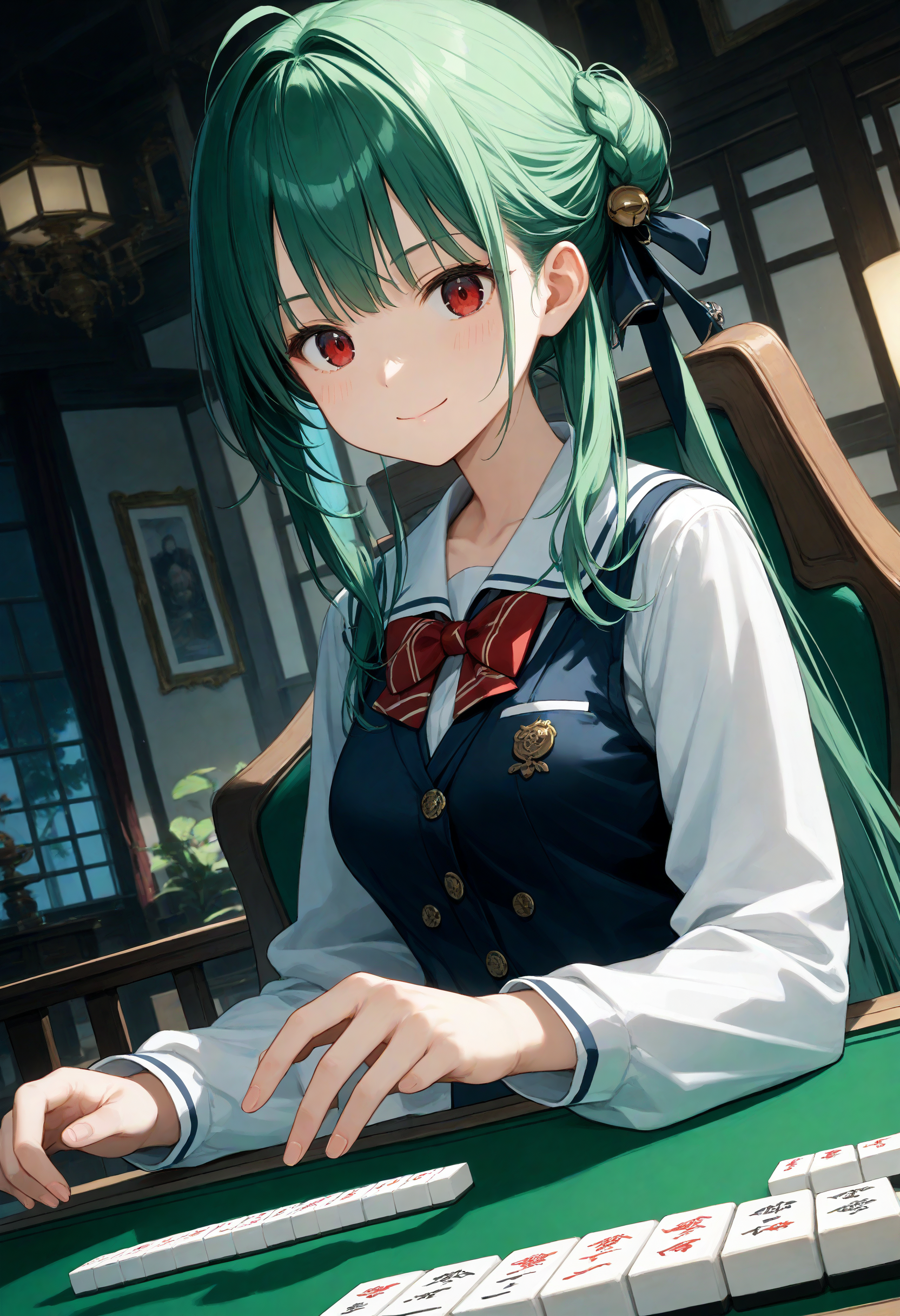 It is possible to create a mahjong-like picture without LoRA, but it seems to learn only the picture of a mahjong win, so the front of the tiles are always visible.