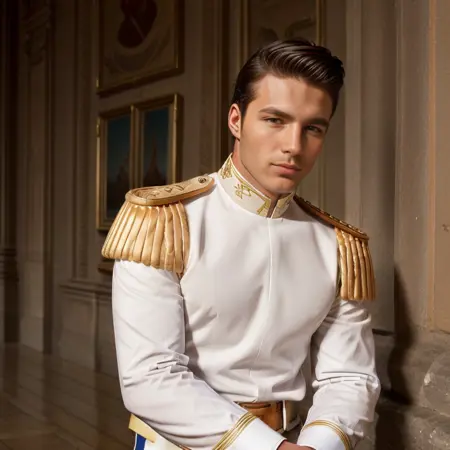 영화 의상을 원한다면 프롬프트에 "유니폼, 금색 줄무늬가 있는 빨간 바지, 어깨장식, 에기올렛 줄"을 추가하세요.