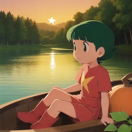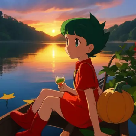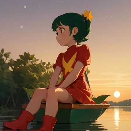 クレム, kuremu, green hair, short hair, blue eyes, red short dress, red short boots,