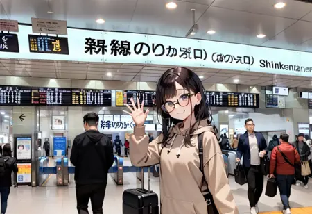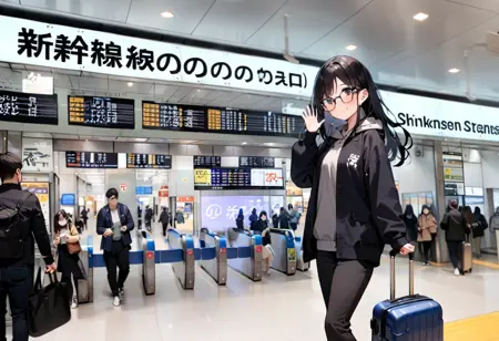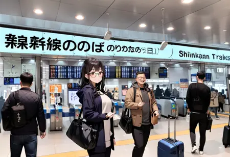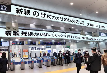 これはJR新大阪駅の新幹線乗り換え口の風景イラストをもしかすると描くことができるかもしれないLoRAです。